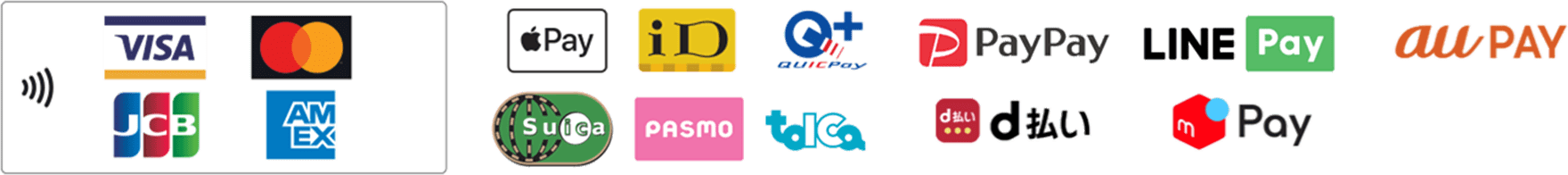 お支払い方法 現金、クレジットカード・タッチ決済・QRコード決済